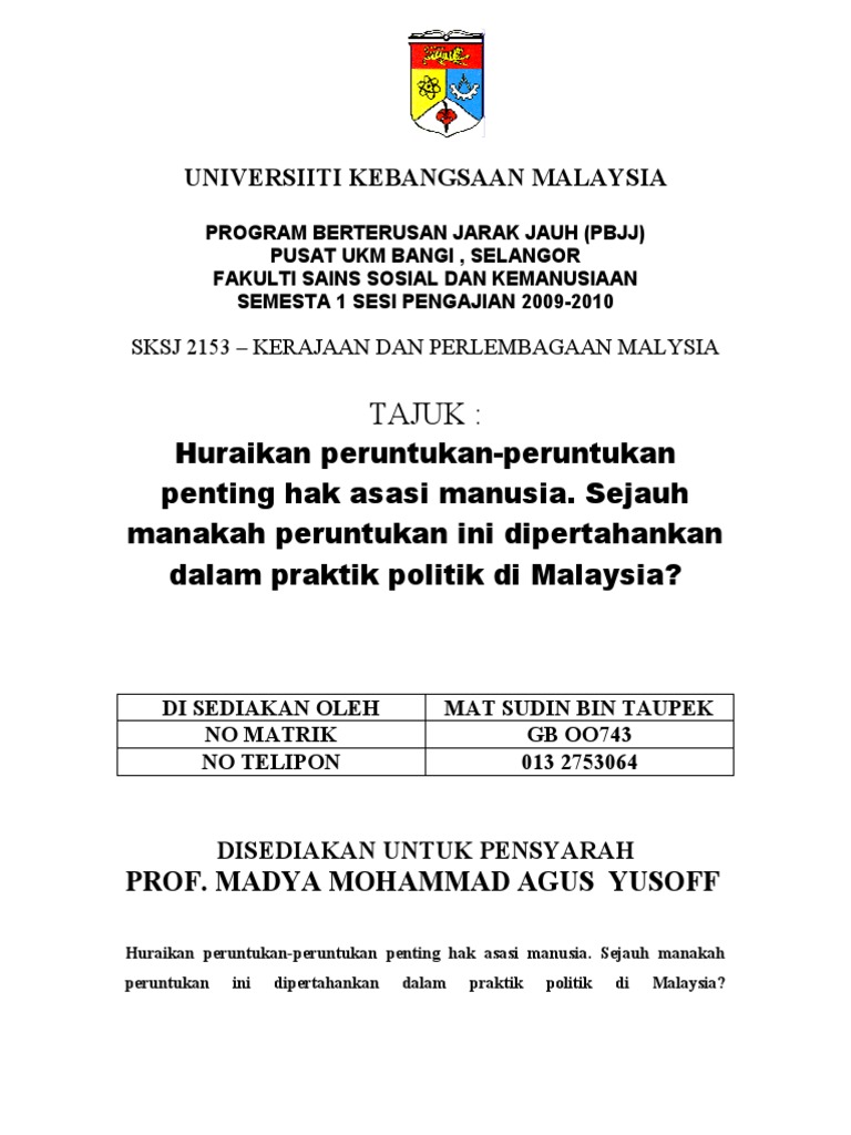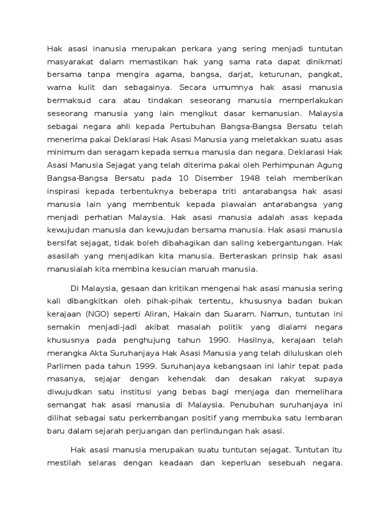 Hak Asasi Manusia Di Malaysia Doc Hak Asasi Manusia Di Malaysia Pengenalan Dokumen Asas Kepada Hak Asasi Manusia Pertubuhan Bangsa Bangsa Bersatu Course Hero